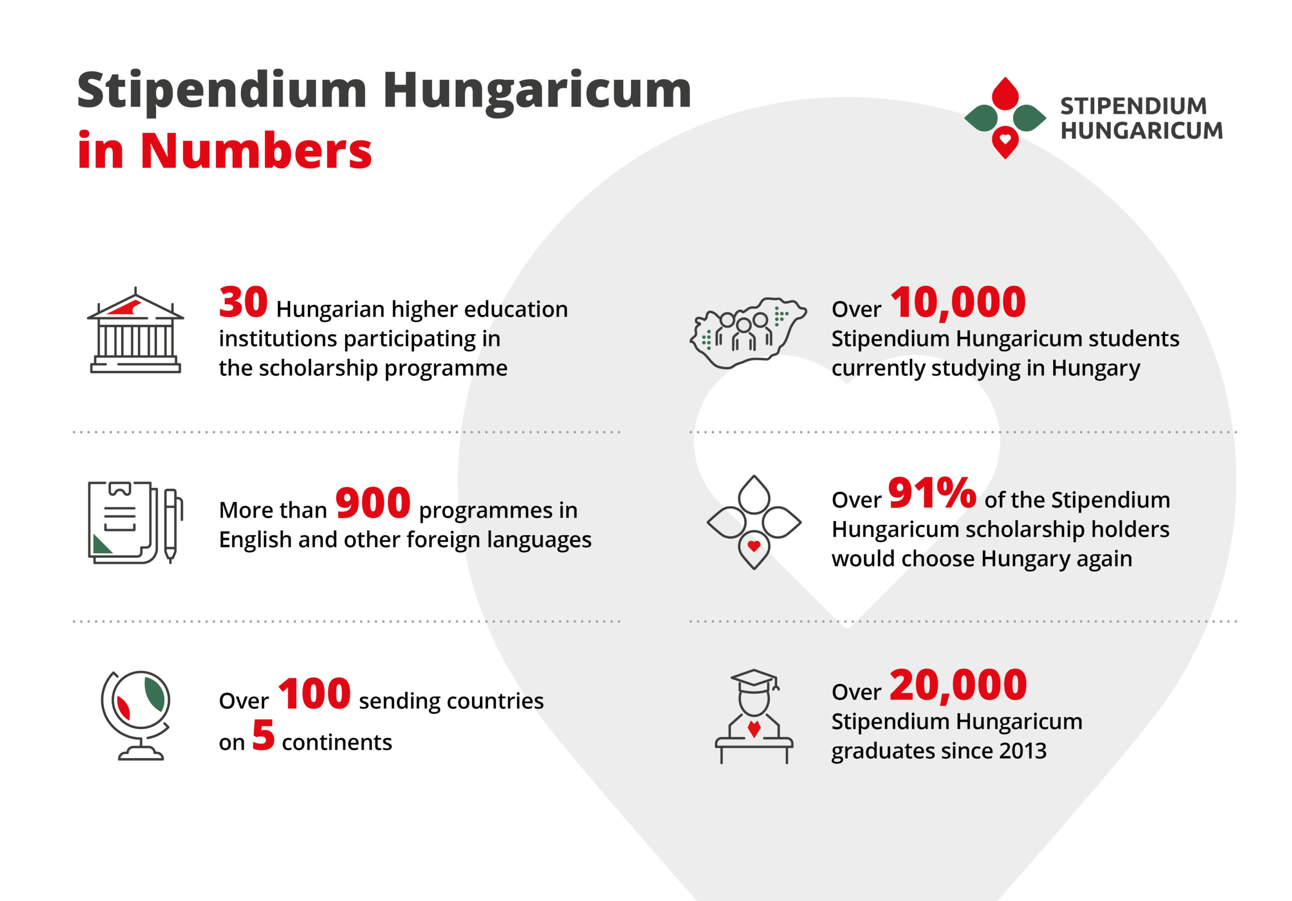 The Hungarian Government established the Stipendium Hungaricum scholarship programme to promote the internationalisation of Hungarian higher education and to attract top international students from all around the world who can establish personal and professional links to Hungary while enjoying high-quality education in the heart of Europe.